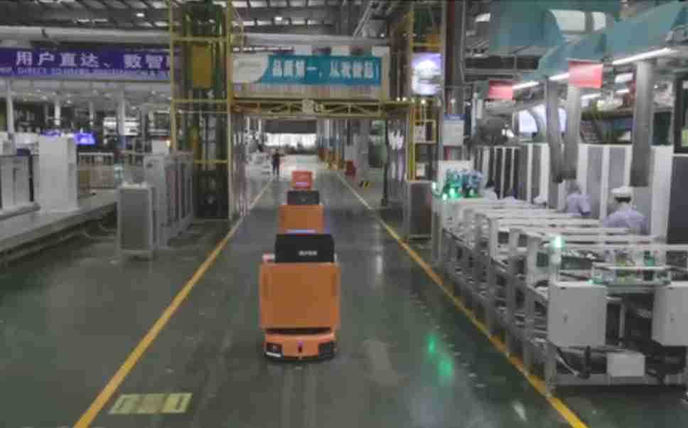 为车载冰箱物流配送打造的智能解决方案,,,包含产中物流通过潜伏举升AMR搬运至线边,,产后成品物流智能仓储,,流程包含产中物流智能齐套入库,,,线边安灯叫料AMR智能配送至线边,,,成品入库、、、、出库,,,,通过无人堆高车机器人,,智能仓储管理替代人工作业管理,,,实现更高存储、、、、更高效率、、、、更具柔性化的解决方案。。