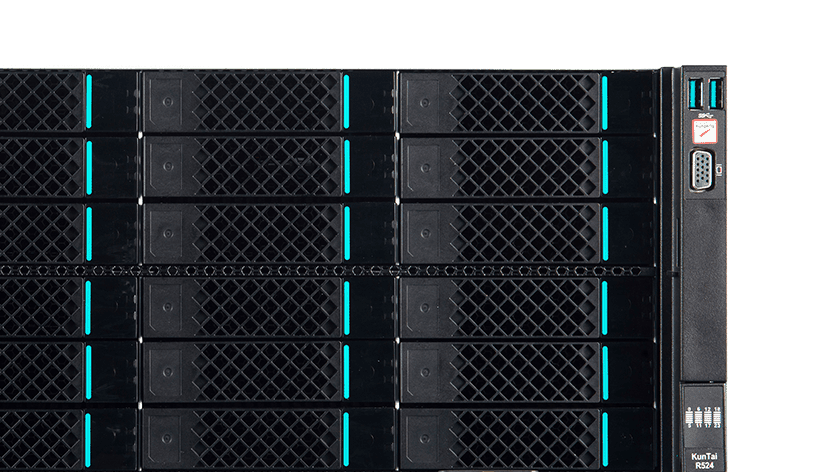 KunTai R524 存储型服务器是RB88数码基于鲲鹏处理器推出的新一代 ARM数据中心服务器。。主要面向存储业务,,,,具有海量存储、、、高性能、、低功耗以及易扩展的特点,,,适合为大数据分析、、、软件定义存 储等应用场景的工作负载进行髙效加速。。